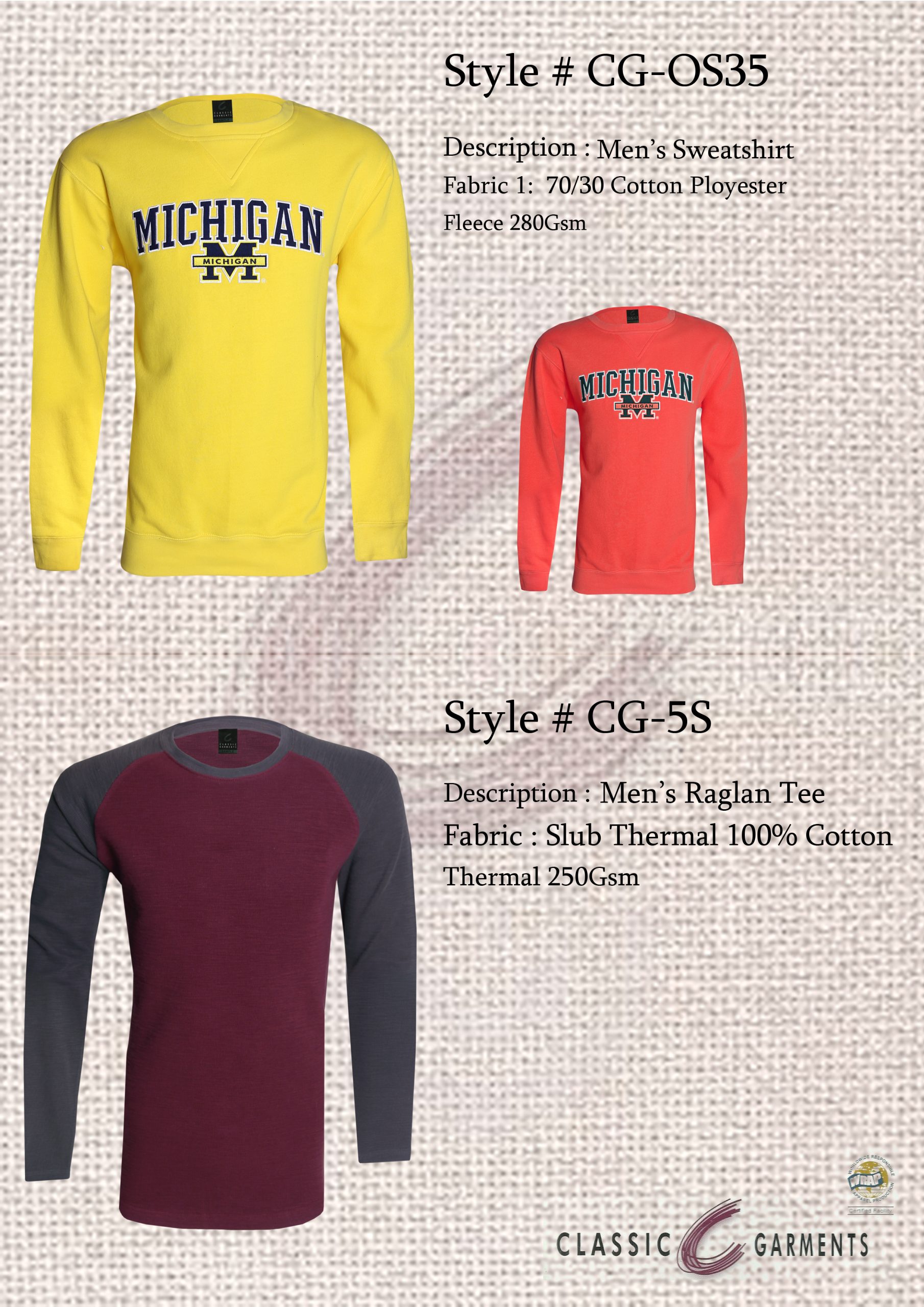 Product Line: Fleece Men’s Hoody, Rompers, Shorts Sets, Polo Shirt, Henley, Crew Neck, Sweat Shirts, Trousers, Night Wear’s, Pajama Sets, Cargo Pant / Shorts, All Kind of Shorts.